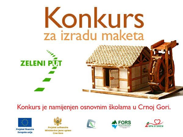 Organizacija “Župa u srcu” u saradnji sa OŠ “Dušan Bojović”, u okviru projekta Zeleni put, raspisala je konkurs za izradu maketa na temu etno objekata – (kuće, ambari, čardaci, mini – farme) ili vodenice od prirodnih materijala (kombinacija prirodnih materijala – metal, kamen, glina, drvo (iskorišćena palidrvca, šibice), vuna, svila, koža, krzno, pamuk, itd., za učenike svih osnovnih škola u Crnoj Gori. Projekat finansira Evropska Unija, a sufinansira Ministarstvo javne uprave Crne Gore, a u okviru FORS Montenegro Green Economy for Advanced Region /Zelena ekonomija za razvoj regiona.