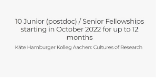 Katte Hamburger Aachen Cultures of research- je koledz koji otvara 10 slobodnih mjesta za stipendiste u toku akademske 2022/2023. godine. Neophodno je da izabrani stipendisti imaju završen fakultet humanističkih i socijalnih nauka/prirodnih i tehničkih nauka. Cilj ovog programa jeste da pojedinci razviju slobodan pristup istraživanju u periodu od 12 mjeseci.