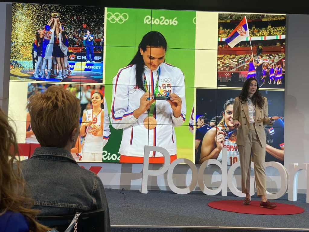 Prva govornica bila je Sonja Vasić, poznata košarkašica koja i nakon završetka igračke karijere nastavlja da doprinosi sportu. Govorila je o svojim počecima, ističući da su je do ciljeva doveli upornost, istrajnost, disciplina i predan rad. Mladima je poručila tri ključne stvari: da prate svoje životne vrijednosti, da budu sami svoj brend i da se što više umrežavaju. Njen moto je: “Ne biram ili-ili. Biram i.” — naglašavajući da može biti i majka i žena, jaka i ranjiva, i istovremeno pronaći mir u sebi.