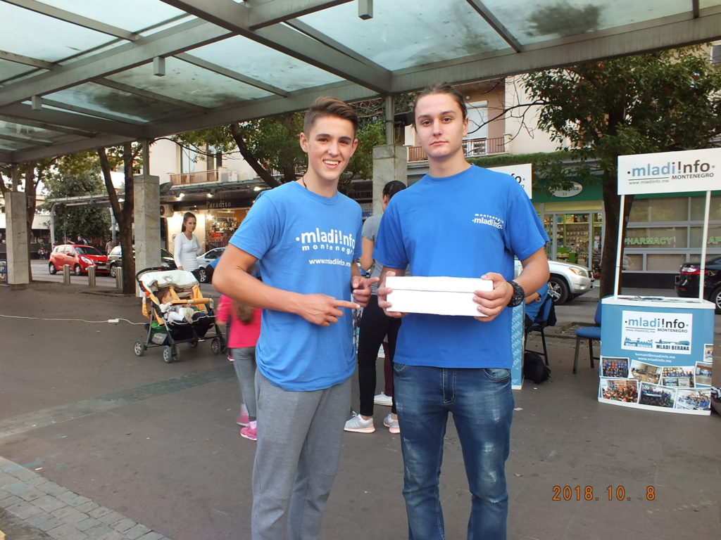 NVO Mladiinfo Montenegro povodom Međunarodnog dana humanitarnih akcija 08.10.2018. godine realizovala je volontersku akciju „Mladi na djelu“.
