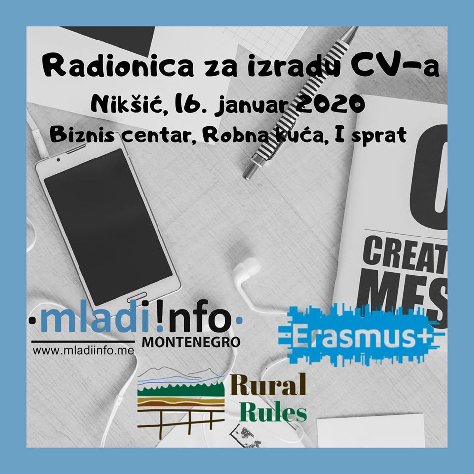 NVO „Mladiinfo Montenegro“ raspisuje poziv za radionicu za izradu CV-a, koja će se održati 16. januar 2020. godine, u prostorijama Biznis centra, Robna kuća, I sprat u Nikšiću.