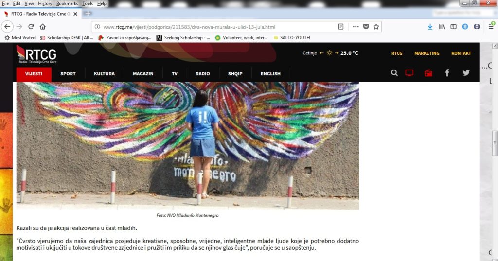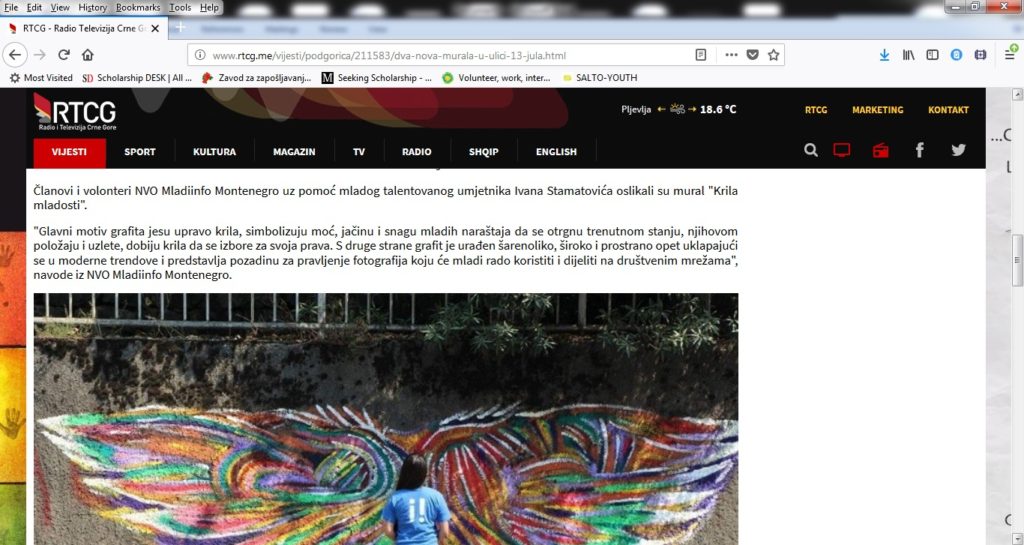 Članovi i volonteri NVO Mladiinfo Montenegro uz pomoć mladog talentovanog umjetnika Ivana Stamatovića oslikali su mural “Krila mladosti”.
