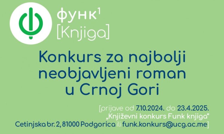 Organizacioni odbor Festivala umjetnosti, nauke i kulture Univerziteta Crne Gore raspisao je Književni konkurs „FUNK knjiga” za najbolji neobjavljeni roman. OBLAST: književnost OPIS Konkurs „FUNK knjiga” je namijenjen autorima koji su državljani Crne